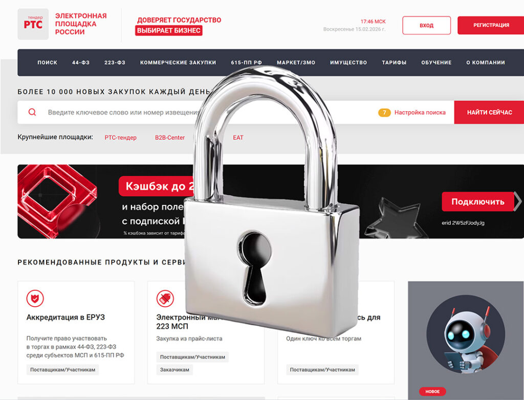 Заявки принимались до 10:00 16 февраля 2026 года. В пятницу 15 февраля, проверяя готовность документов, мы обнаружили, что технический интерфейс площадки ООО «РТС-тендер» блокирует отправку заявки.